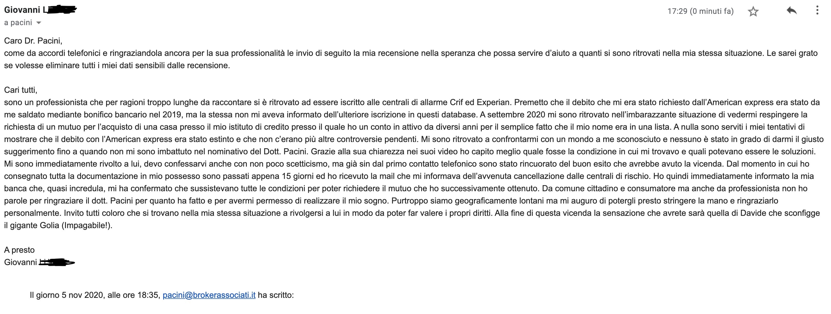 e tutto questo senza nessun tribunale con costi e tempi esosi, ma ovviamente affidandosi SOLO ed ESCLUSIVAMENTE a ESPERTI del CREDITO riconosciuti e responsabili che possano garantire un risultato certo con RICORSI e RECLAMI che (non cito per proprietà intellettuale LUCA PACINI, ndr) elencano molte più violazioni che una semplice raccomandata
