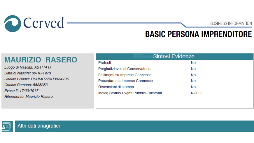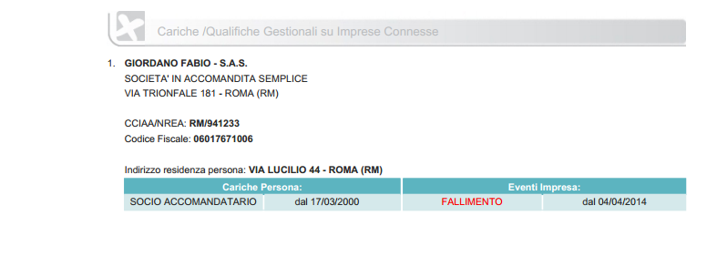 E questo salvo rari casi in cui è possibile intervenire alla Camera di Commercio e Cerved spa ma anche altre banche dati PRIVATE, che pubblicano i dati del fallimento, sia come amministratori che soci di imprese fallite, e quindi del proprio nome, che di fatto mettono in cattiva luce il proprio nominativo (ossia il CODICE FISCALE) con pregiudizio per QUALSIASI rapporto bancario o commerciale.